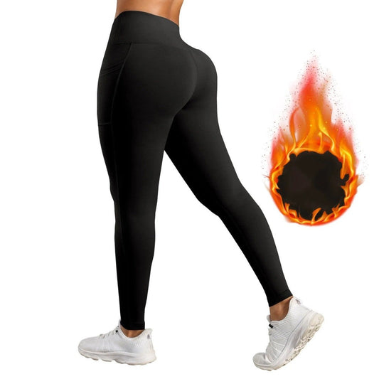 High Waisted Warm Wool Lined Tight Pants With Pockets